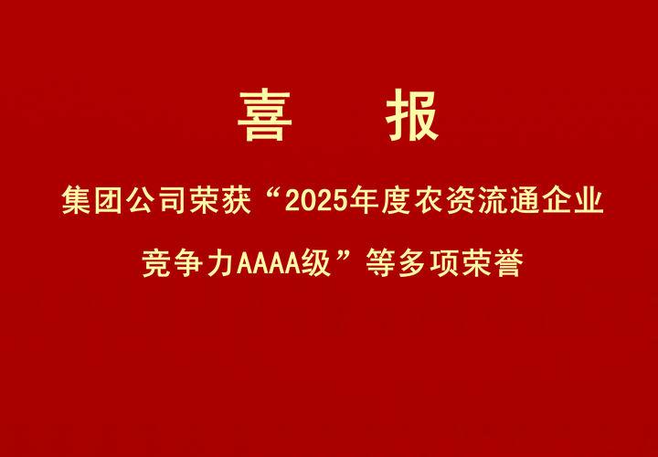 - 喜報|集團公司榮獲“2025年度農(nóng)資流通企業(yè)競爭力AAAA級”等多項榮譽